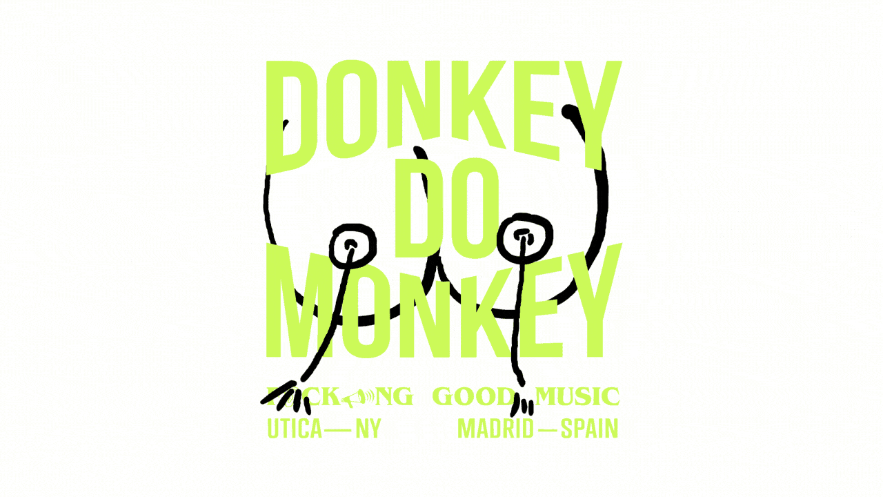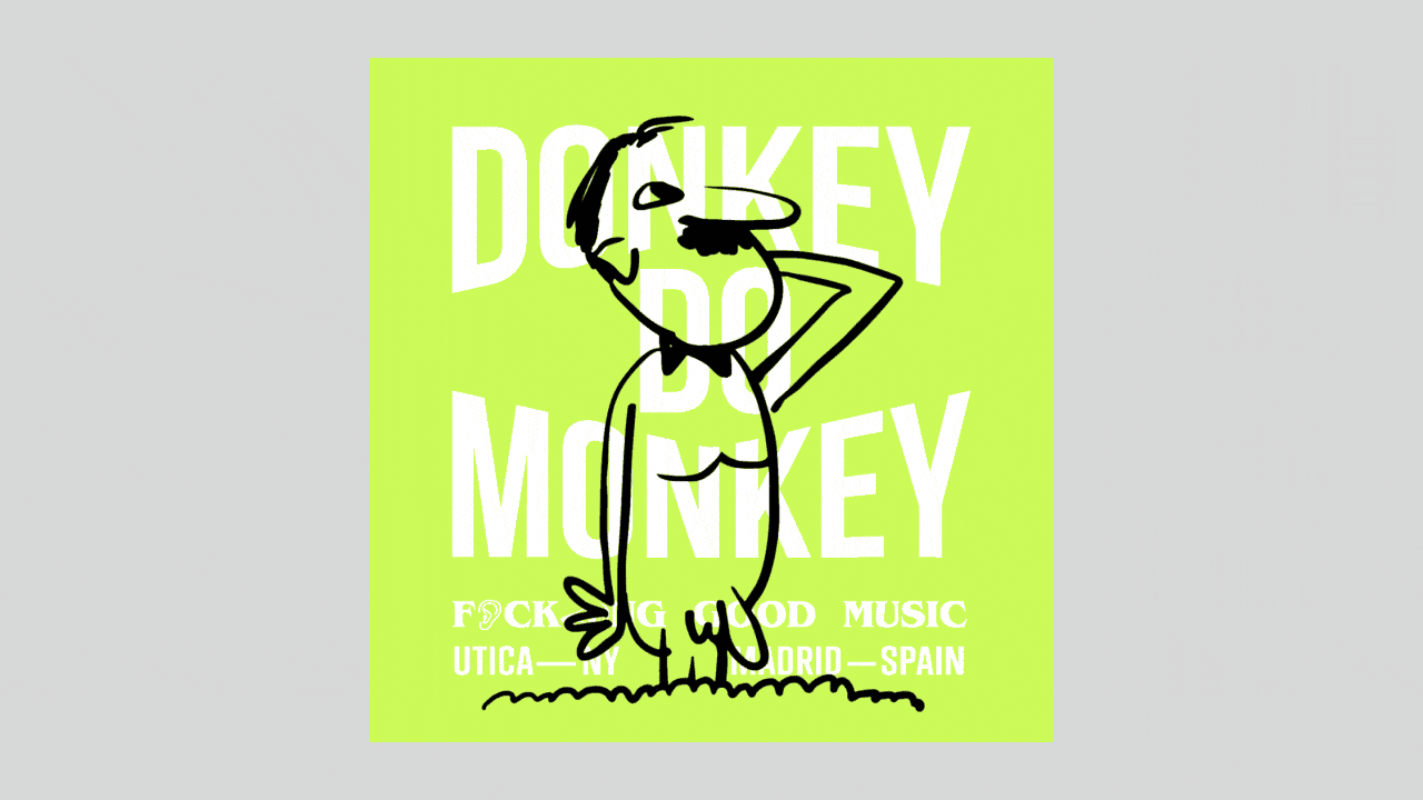 We created lots of things for Donkey Do Monkey. From the phrase that serves as motto for the band, "Fucking Good Music",to the digital covers, through street posters and animations for social media or T-Shirts. We are proud to be involved in the local music scene of Madrid with this outstanding underground music group.